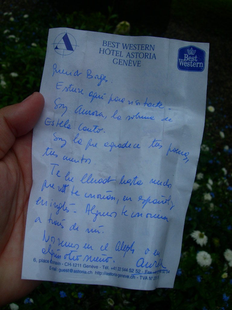 admiradores. Ella menciona la hojita del Best Western Hotel Astoria que dejó Aurora, sobrina de Estela Canto…